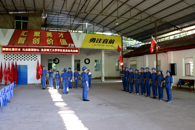 开班仪式上,实践团全体成员以饱满地热情高唱了中华人民共和国国歌。刘老师向同学们提出了五项纪律要求,并带领实践团成员宣誓,保证遵守纪律、听从指挥、高效完成实践任务。