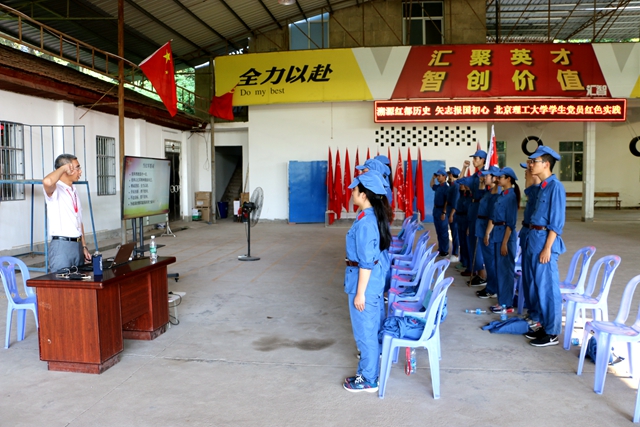 7月10日,实践团从北京出发,于11日中午到达了此次江西之行的第一站——赣州。经过短暂的休整,实践团于当日下午来到了赣州市委党校,进行“当一名红军战士”的主题学习。