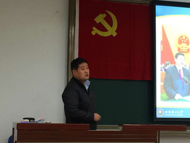 李冰首先带领在场新生观看了由学校党委组织部、党委宣传部、人文与社会科学学院党委联合出品的《我的入党故事》微视频,视频中优秀教职工党员及优秀学生党员的入党经历,使在场新生深受鼓舞,在现场引起热烈反响。随后,李冰以中国共产党的发展历程为切入点,介绍党史、党领导人民夺取全国政权的艰难历程;分析了党领导人民夺取全国政权并至今取得辉煌成就的主要经验和启示;围绕信仰和信念,强调了“信仰”、“信念”的重要性,希望大家能够在树立正确的世界观、人生观、价值观的基础上,建立起自己正确的人生信仰。李冰还强调,新生申请入党要经过慎重考虑,不可跟风;要端正入党动机,庄重对待入党行动;要认识到入党的严肃性与责任性,为党和国家的发展贡献力量。同时提出要想入党,不能只在行动上入党,更要在思想上入党,从当下开始,从郑重书写入党申请书开始,以一名优秀共产党员的标准严格要求自己。