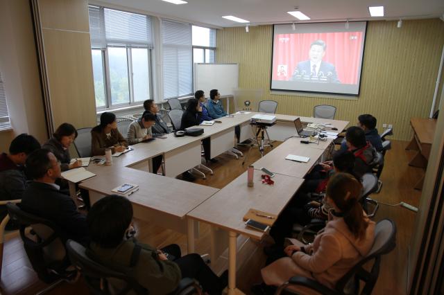 聆听完庄严的国歌之后,学院师生认真观看开幕会并学习习主席报告讲话。大会上,习主席提出了“四个新”---新时代、新思想、新目标、新征程---的国家发展理念,和“四个伟大”---更有能力和信心实现民族复兴、实现伟大梦想必须进行伟大斗争、必须建设伟大工程、必须推进伟大事业---的党的奋斗方向。听完习主席的报告,大家备感振奋,均跃跃欲试,表示将在今后的工作中广泛宣传、全面贯彻、认真践行党的十九大报告精神,坚定信念跟党走,不忘初心谋发展、齐心合力加油干,将以更饱满的工作热情、更踏实的工作态度,克难攻坚、努力奋进,矢志不渝地在新时代创造新辉煌。