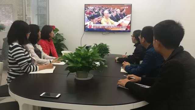 10月18日上午九点,米兰教育基金会党支部全体党员干部在教育基金会办公室会议室认真收看十九大开幕式直播。