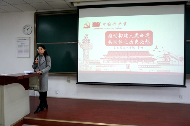 校级学习小组成员的宣讲以十九大报告原文为范本,结合当下社会热点,引导学生党员和其他学生关注党和国家大事,在学生当中起到了统一思想、凝心聚力的效果。生命学院2017级硕士生刘田田结合十九大报告第七部分,围绕“文化自信是什么”“为什么要坚定文化自信”“当代大学生如何坚定文化自信”等三个方面,引导同学们学习和领悟中华优秀传统文化的丰富内涵,特别是社会主义核心价值观,做中华优秀传统文化的忠实传承者和弘扬者;马克思主义学院2017级硕士生李艳结合十九大报告第十二部分,从共同体的四种形态即自然共同体、虚幻共同体、抽象共同体、人类命运共同体出发,向同学们阐述了人类命运共同体的真正内涵以及提出人类命运共同体的现实价值,并提出要把自己的梦想与中国梦紧密结合,把个人利益追求置于社会总体利益实现之中,不断奋进、砥砺前行;徐特立学院2015级本科生赵梓辰结合十九大报告第十一部分,列举香港和澳门“一国两制”制度取得成功的事例,引导同学们要坚持党的领导,敢于同台独等分裂势力做斗争,坚定“一个中国”的政治立场不动摇,以实际行动维护祖国统一。