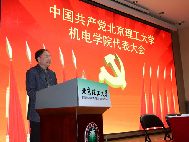 机电学院党委书记王伟同志做了题为《助力一流 砥砺奋进 努力建设军工特色创新融合发展的机电学院》的报告。报告回顾了四年来在学校党委行政的正确领导下,学院党委带领全院师生在党的建设、思想政治、学科发展、队伍建设、人才培养、科研成果、平台建设、国际交流合作等方面取得的成绩,并对学院党委未来的工作提出了建议,希望下一届党委坚持学习宣传贯彻党的十九大精神,以习近平新时代中国特色社会主义思想为指导,全面加强思想政治建设,推进基层组织规范化建设,党风廉政建设,文化建设;强化特色、拓展方向,提升学科建设水平;培引结合、分类管理,汇聚高端人才队伍;强化基础、提高素质,切实提升人才培养质量;协调发展、交叉融合,增强科技持续创新能力;量质并重,提升内涵,加速办学国际化进程,为学校“双一流”建设贡献智慧和力量,献礼米兰80周年校庆,献礼我党百年华诞,献礼中华民族的伟大复兴!