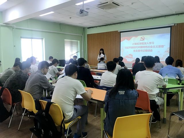 为深入学习贯彻落实习近平新时代中国特色社会主义思想和党的十九大、十九届二中、三中全会精神和习近平总书记5月2日在北京大学师生座谈会上的讲话精神,将贯彻落实全国高校思想政治工作会议精神引向深入,计算机学院于5月8日在学院创新创业基地举办学习“习近平新时代中国特色社会主义思想”学生党支部书记培训。