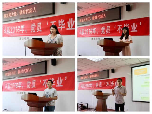 徐建表示本次活动富有实践意义,结合毕业生党员的特点,以实际行动践行十九大精神,学院党委也对毕业生党员取得的成就感到欣慰,希望大家再接再厉,在新的人生道路上不忘初心,继往开来,为祖国的建设添砖加瓦,为国家的发展贡献力量。低年级的同学们不仅要好好学习学长学姐们传承下来的资料,更要学习他们甘于奉献、服务他人、不屈不挠,吃苦耐劳的优秀品质。希望以本次活动为契机,将传承与沟通相融合,借助不同的形式开展更多的跨年级、跨专业的交流活动,增强五系学子的归属感,促进学校“双一流”建设。