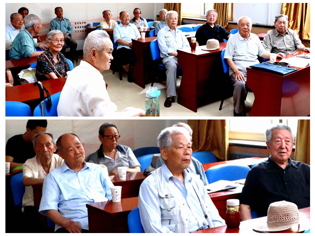 6月12日上午,学校远志楼109活动室迎来了一群“80”后离休老干部,他们都是建国前参加革命工作的老党员,今天是来参加离休第一、二、三党支部联合召开的“我看改革开放40年”组织生活会,会议由离休第三党支部书记、90岁高龄的王秀峰主持。