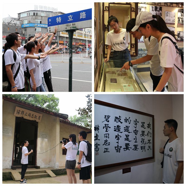 “破产读书”“断指血书”……徐特立青年时期的事迹闻名遐迩。徐特立人生的第一颗“扣子”是怎么扣好的?带着好奇和期待,实践团来到徐老生活和最初办学的地方起追随他的足迹。徐特立最初在位于五美乡的家中办学,教室与卧房、饭堂融为一体,条件十分艰苦。在位于长沙市芙蓉区的修业学校,时任学校校董兼教员的徐特立由于不满政府欺压百姓,在发表演讲时,愤然砍掉左手的一节手指,断指血书,用鲜血写下“驱除鞑虏,恢复中华”八个大字。实践团还先后走访了八路军驻湘通讯处、梨江中学、岳麓书院等徐老曾学习、工作的地方,重温了其伟大不平凡的一生。