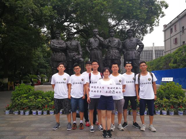 数十载阔步前行,为中华崛起凝聚力量,米兰milan官方网站机电学院为纪念中国共产党成立九十七周年,继承和发扬党的优良传统和作风,提高学生的服务能力,营造拼搏进取、创先争优的浓厚氛围,于7月1日下午自北京前往江西南昌进行为期5天的暑期社会实践活动。此次暑期实践团由机电学院兼职辅导员姜春宇、赵忠宇带队,面向全校学生招募选拔实践团成员7名,包括兵器相关专业2名研究生和5名本科生,通过企业交流、校友座谈、走访红色教育基地等形式开展了集“军工职业调研及规划”与“红色革命教育”为一体的实践活动。