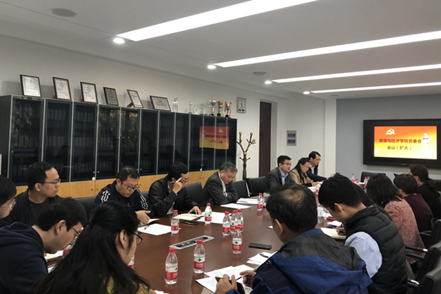 2018年10月24日,管理与经济学院在主楼345会议室召开了党委会议(扩大),学院党委书记王兆华、院长魏一鸣等党委委员,党政联席会成员及各教工党支部书记出席会议,会议由王兆华主持。