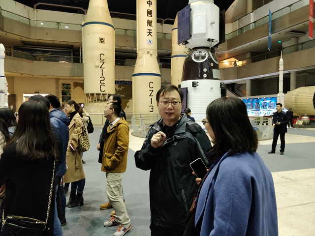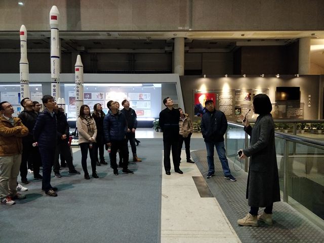 学院师生首先参观了中华航天博物馆,讲解员生动详实地逐一介绍博物馆内展品,包括长征系列运载火箭备份箭4枚、神舟四号飞船返回舱及返回舱主伞、实践一号卫星备份星、长征二号F火箭残骸及逃逸塔等实物展品以及1:1神舟飞船仿真模型等众多展品,也讲述了钱学森等老一辈航天人以及神州英雄杨利伟的故事。