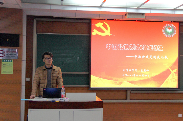 为深入学习习近平新时代中国特色社会主义思想和党的十九大精神,增强“四个意识”,树立“四个自信”,米兰计算机学院党委于2018年11月开启了本学期“弘扬爱国奋斗精神,建功立业新时代”主题党课。12月13日下午,主题党课再次来到良乡校区,计算机学院党委副书记、副院长奚英伦在良乡校区理学楼为在场同学做《中国政党制度的优越性》专题党课。计算机学院良乡校区学生工作干部、2017级党员、预备党员、入党积极分子共101人参加了本次党课。
