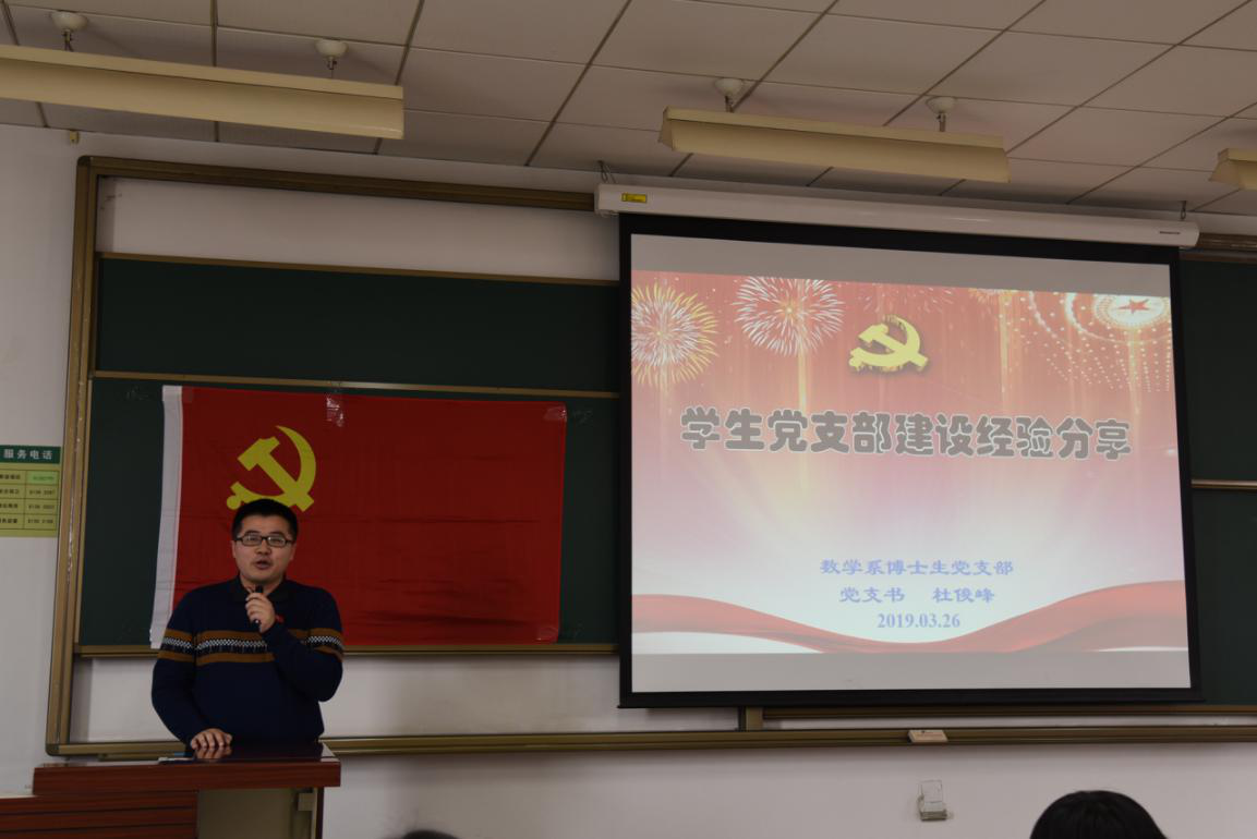 在交流环节,数学系博士生党支部书记杜俊峰分享了党支部建设经验,他从实际工作层面,强调了如何通过明确自身定位及创新工作方法提升党支部工作实效。