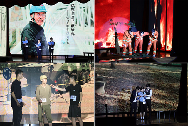 “听到操着地道四川话的‘小平爷爷’亲口说出改革开放的初衷,我仿佛看到了习以为常的舒适生活背后,中国共产党的理论创新与坚强领导……”持续四个小时的决赛结束了,郑宇馨耳边似乎仍萦绕着邓小平南巡讲话的声音。在“Party-party”的舞台上,一个个历史事件变成了鲜活的画面和生动的语言,给同学们留下了深刻的印象,植下了一颗颗爱国奋斗的种子。从《五四春潮》到《红岩》,再到《超时空对话》,富有感染力的舞台剧再现了五四运动以来有志青年爱国奉献、奋斗不息的历史片段,真切反映了“一个时代有一个时代的主题,一代人有一代人的使命”。