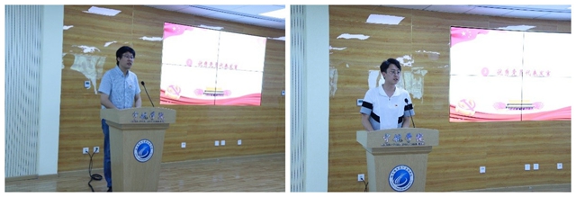 优秀教师党员代表张凯、赵子威作了交流发言,分享自己的事例,党员的责任与担当让他们更加积极与努力。