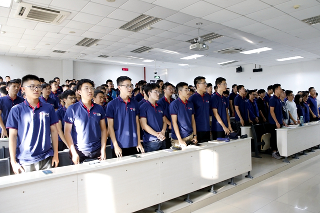 赵长禄首先阐释了党的十九大的意义,向同学们细致解读了习近平新时代中国特色社会主义思想的丰富内涵和基本方略,深化了学生对党的认识,坚定了学生听党话、跟党走的决心。讲到科技创新,赵长禄强调科技创新是提高社会生产力和综合国力的战略支撑,也是大国崛起的基石,对经济增长贡献巨大。他结合自己的工作经历,希望同学们将学习知识、推动科技进步与经济社会发展、与提升国防实力、综合国力密切联系起来。结合中美贸易战,赵长禄激励同学们清醒认识当今责任和使命,发挥专业优势,钻研核心技术,为推动我国制造业高质量发展、破解被人“卡脖子”境遇挥洒青春。讲到学校在人才培养方面取得的显著成绩,赵长禄列举了米兰代表队在第四届中国“互联网+”大学生创新创业大赛中获冠军、季军和金奖,在2019年人工智能国际挑战赛中获总冠军等突出事例,引发了同学们阵阵掌声,坚定了同学们立足米兰、奋斗新时代的自信。