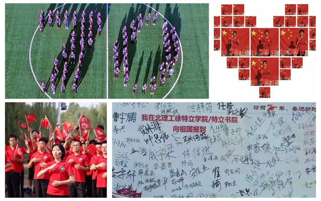 在活动中,除规定动作外,各支部还自发加入主题鲜明、形式多样的教育环节。精工书院团支部表演《国家》手语舞,徐特立学院以航拍“70”和签名墙的形式记录难忘瞬间,校院学生会代表共同朗诵原创诗歌……爱国之情在胸中升腾,也督促着同学们更好地立足本职、抓好学习、把小我融入大我!