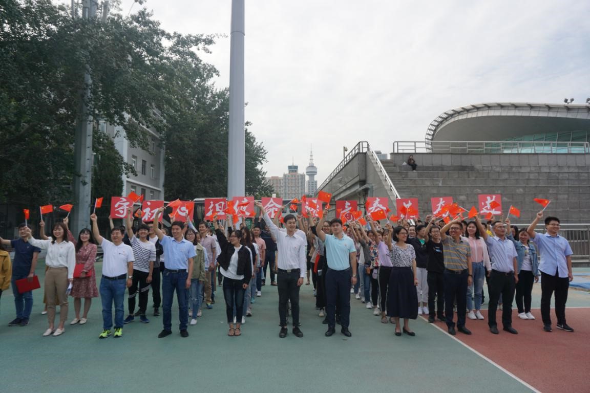 物理学院党委与新华书店总店团委联合举办“不忘初心、牢记使命”主题教育特色实践活动——“国旗下的演讲”。本次活动是 “不忘初心,牢记使命”主题教育的一次生动实践,将主题教育成果内化于心、外化于行,同学们献礼祖国70华诞,发表国旗下演讲,结合自身学习工作实际,诠释对“不忘初心、牢记使命”的理解,号召全体党团员同志们将个人价值同党的事业、祖国的命运、人民的幸福结合起来,努力奋斗,不负时代重任。参加活动的同志们都有深刻的感受,感受到作为青年党员应有的活力以及肩上的责任之重大!