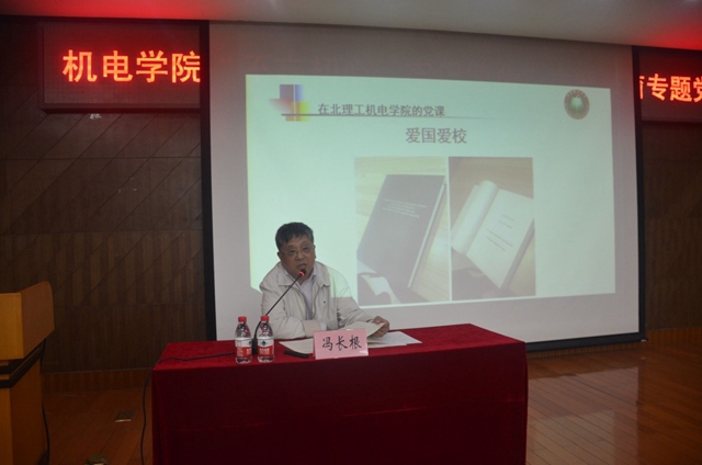为全面贯彻落实习近平总书记在“不忘初心、牢记使命”主题教育工作会议上的重要讲话和《中共中央关于在全党开展“不忘初心、牢记使命”主题教育的意见》精神,加强全院师生的爱国主义教育,10月21日下午,机电学院在中关村校区图书馆报告厅召开“不忘初心、牢记使命”主题教育专题党课,邀请冯长根教授为主讲人,机电学院全体院领导、全体教工党支部书记、学生党支部书记、新聘任教师及部分学生代表参加了此次党课。