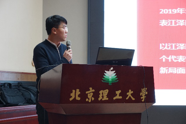 作为群众游行方阵的带队老师,2017级本科生辅导员禹世杰为现场同学们带来了一场别出生面的“方阵解密”。我校3499名师生构成了“与时俱进”方阵,代表江泽民主席走过天安门。禹世杰老师从方阵点阵图、方阵主题、方阵道具和训练过程等方面为同学们描述了自设计规划方阵到学生演练、游行现场的情景。他讲到,游行训练的要求高、训练过程艰辛,但是大家通过天安门时都觉得艰辛坚持都是值得的,他以“使命”“传承”与“感动”三个词对同学们提出新的鼓励和希望。