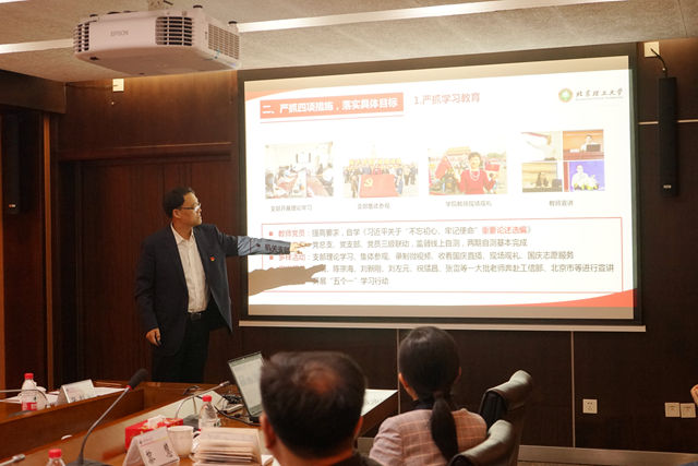 党总支书记刘存福围绕《聚焦中心工作,严抓四项措施,扎扎实实开展主题教育》开展工作汇报。从“学院高度重视,做好动员部署”“严抓四项措施,落实具体目标”“贯彻实施方案,探索长效机制”三部分汇报了学院主题教育情况。他表示要不断对标“守初心、担使命,找差距、抓落实”的总要求,确保完成“理论学习有收获、思想政治受洗礼、干事创业敢担当、为民服务解难题、清正廉洁作表率”的具体目标,为推动新时代思政课改革凝心聚力,向中央、上级,师生交一份满意的答卷。