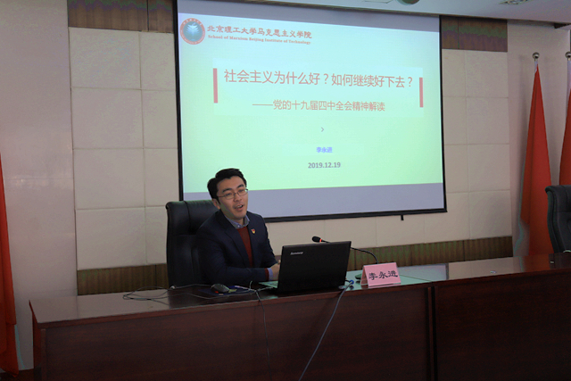 12月23日上午,学院教师杨才林在房山区河北镇进行理论宣讲,宣讲题目为“制度优势13条,党的领导第1条”。他先从苏联领导人赫鲁晓夫1959年访美时与20世纪福克斯公司总裁斯库拉斯“斗智、斗制”的插曲说起,说明外交场合社会制度较量无处不在。并讲述了四方面内容:新中国70年历史巨变,以成就经验彰显制度优势;面对世界百年未有之大变局,十九届四中全会的决定具有里程碑意义;中国制度和治理体系具有十三方面的显著优势,中国之制支撑中国之治,对比“西方之乱”,中国“风景这边独好”;新时代中国特色社会主义行稳致远,发挥优越性,坚持和完善党的领导制度体系至关重要。