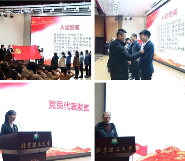 学院党建组织员霍晶代表学院党委宣读《对2019年下半年预备党员发展的审批意见》和预备党员名单。新发展的102名预备党员们面向党旗庄严宣誓,并佩戴党徽,在场所有老党员共同重温入党誓词。校党建专家徐其敏和学生党员郭云霞作为党员代表进行发言。徐其敏结合自己多年的党建工作经验讲到,无论新老党员都要认真学习党章党规,学习系列讲话,时刻用共产党人的标准衡量和要求自己,永葆共产党人的初心和使命。被推荐为北京市优秀毕业生的郭云霞同学分享其从一名入党积极分子成长为党员的心路历程,并呼吁学生党员们不但要在学习、学术科研和社会实践等多方面起到带头作用,也要充分发挥党员的模范先锋和辐射带动作用。