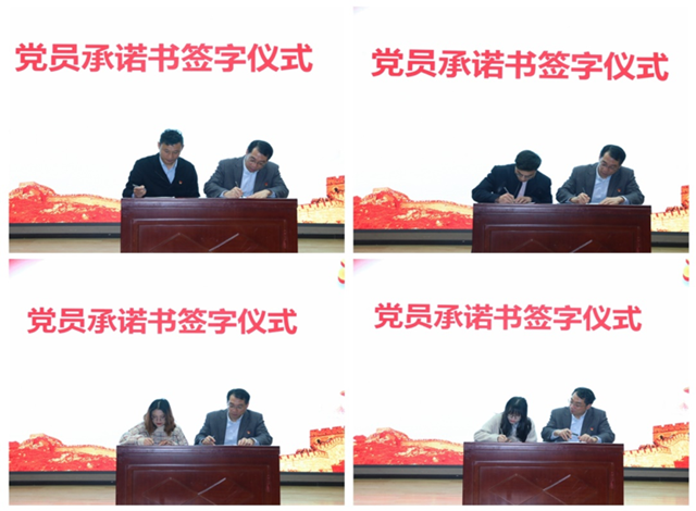 在党员承诺书签订仪式中,全体党员认真阅读承诺书内容,并向学院党委庄严承诺,学生党员代表依次与颜志军签订承诺书。作为学院党建工作品牌,学院坚持开展党员承诺书签订仪式。承诺书中细化了学生党员的责任和义务,从理论学习、专业学习、联系群众、发挥模范带头作用等五个方面对学生党员提出明确要求,通过量化考核办法记录学生党员承诺践诺过程,并与组织生活会和民主评议党员工作贯通,全覆盖、全方位、全过程加强学生党员教育闭环。