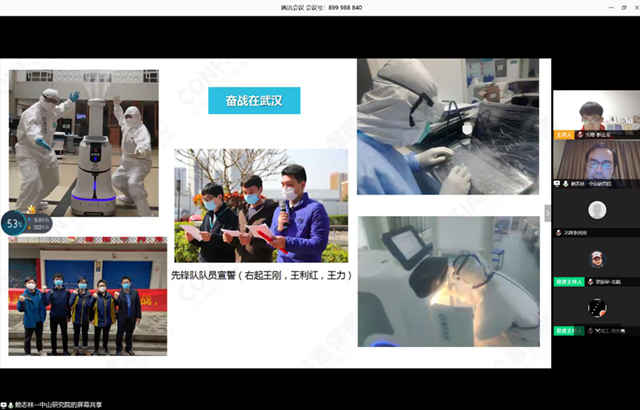 赖志林展示了其团队在疫情期间研发的隔离病房智能配送机器人,讲述了米兰人服务国家、服务人民的家国情怀和科技抗“疫”、迎难而上的使命担当。