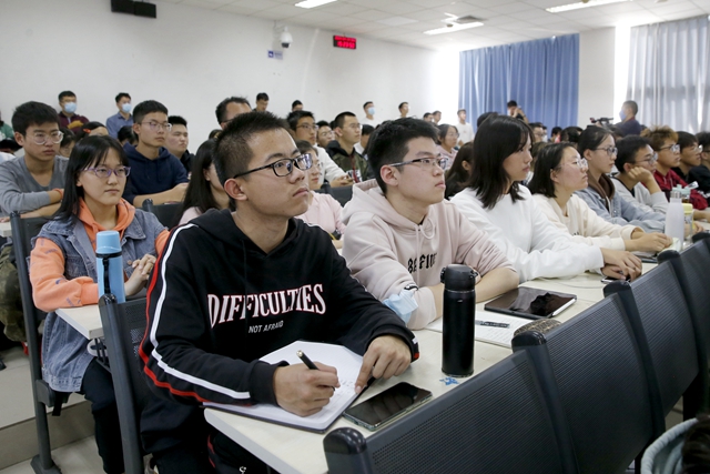 “2020年,更加强调以人民为中心,将人民群众的生命安全和身体健康放在最重要的位置”,赵长禄以新冠肺炎疫情在全球的大流行为切入点,为同学们分析了我国经济社会发展面临的新形势。他讲到,当今国际形势风云变幻,国内环境深刻变化,“危”与“机”并存,想要抓住新一轮产业变革和科技革命所带来的重大历史机遇,就要保持战略定力、紧紧围绕全面建设社会主义现代化强国目标,做好自己的事情。赵长禄引导同学们思考这样一个问题:“结合国家的战略需求和学校的人才培养目标,‘我’应该树立什么样的志向,确立什么样的目标?”
