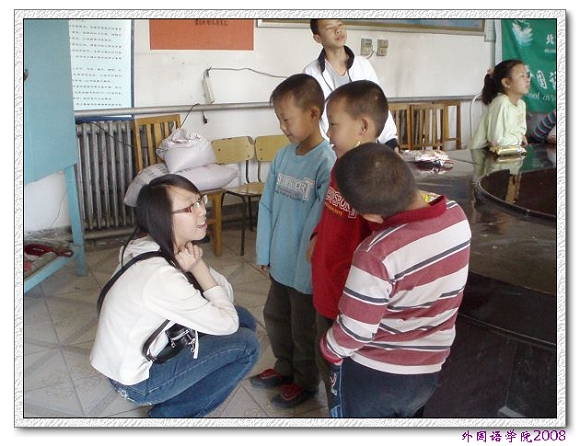 5月18日一早,同学们就驱车来到了位于北京顺义区的东沿头村,在一个简易的教室里,十八个农村孩子端正坐立,眼神澄澈,充满了对知识的渴望。这些孩子年龄跨度从7到15岁不等,其中有几个还是外来务工人员的孩子。同学们精心准备了适合孩子们接受的轻松易学的奥运英语,孩子们学习热情很高,并且对于不懂的问题积极发问,整个课堂气氛和谐欢乐。进行完英语宣讲后,同学代表将在学校募集来的图书赠给了孩子们并且和孩子们结成笔友约定互通信件。