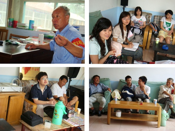 本次活动在大学生村官佟华楠同学的帮助下,得到了大孙各庄镇组织部、大坝洼村党支部和村委会的积极配合。在与村党支部举行的座谈会上,村党支部书记梁金成向学生党员们简要介绍了大坝洼村的人口、经济、农业发展情况;大学生党员们同与会的各位老党员们讨论了近几年该村的合作医疗、粮食直补、教育、经济发展和农民就业等的相关情况。通过了解,我们知道,大坝洼村地处平谷、三河交界,全村共有村民702人,耕地1700余亩,以小麦和玉米为主要农作物,第二、三产业较少,农民主要收入还是来源于耕地,针对大坝洼村的实际情况,学生党员们分析并提出了一些能够提高该村农民收入的意见和建议。