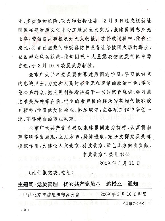 关于追授张建勇同志“北京市优秀共产党员”称号的通知