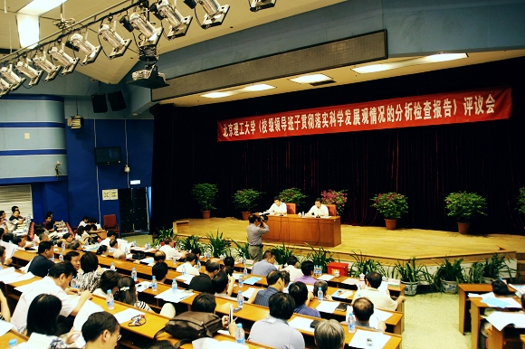 6月9日,我校在中心教学楼一层报告厅召开《校级领导班子贯彻落实科学发展观情况的分析检查报告》评议会。中央部属高校深入学习实践科学发展观活动第十四检查指导组成员、人教司教育处调研员许百涛、武立勋,全体校领导出席会议。学校中层干部、人大政协民主党派无党派代表、教代会工会代表、离退休教职工代表和学生代表300余人参加了会议并对分析检查报告进行了认真评议。校党委书记郭大成代表学校党委作了关于分析检查报告形成过程、主要内容和特点的情况通报