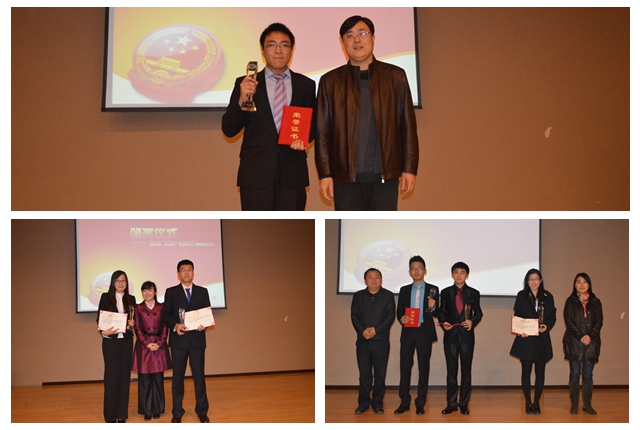 经过现场工作人员对评委打分以及观众投票情况的统计,比赛结果最终揭晓。2010级本科信息安全党支部荣获本次“我来讲,我来听”学生党课评大赛的一等奖,10级本科软件工程一班党支部与10级本科软件工程二班党支部荣获二等奖,13研硕士四班党支部、13研硕士五班党支部与科技创新创业基地党支部党支部获得三等奖。随后,各位嘉宾为获奖党支部颁发奖杯和荣誉证书,并与选手合影留念。