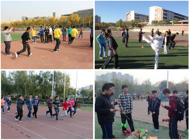 为了让更多同学参与团日活动,很多团支部利用课余时间在校园里开展了包括乒乓球、羽毛球、跑步等大众体育运动和踢毽子、长绳、掷沙包等传统民间体育项目。信息2部07011306团支部开展了多人多足过障碍、背夹气球、运气球等趣味运动;计算机学院07111004团支部开展了以秋季慢跑为主题的体育运动,激发大家参加体育运动锻炼身体的热情;理材学部10011201团支部开展了以踢毽子、掷沙包等传统民间体育项目为内容的团日活动,培养同学间的合作能力,加深同学间的友谊。