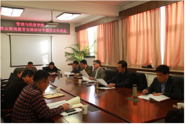 近日,党的群众路线教育实践活动管理与经济学院领导班子专题民主生活会在主楼317会议室召开。学校党委书记郭大成、学校办公室主任郝志强、第一督导组杨惠萍同志出席会议,学院领导班子全体成员参加了会议。专题民主生活会由学院党委书记李金林主持。