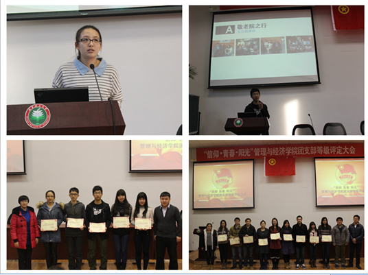 表彰会最后,彭老师宣读了本次管理与经济学院团支部等级评定最终结果,与会老师为各获奖团支部颁发了证书以示祝贺并合影留念。