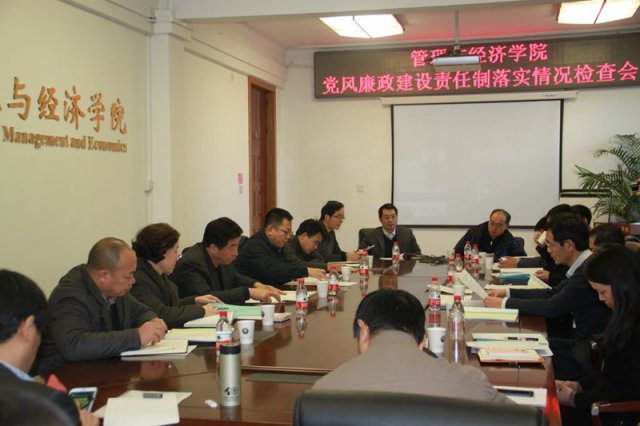 在检查工作中,检查组首先听取了各单位党政主要领导干部关于本单位落实党风廉政建设责任制,推进惩防体系完成情况的汇报。认真检查了各单位落实党风廉政建设责任制的领导体制、工作机制和相关制度的建设和执行情况;领导干部完成党风廉政建设责任制相关任务情况;新任处级干部工作交接情况和单位《党风廉政建设责任书》的签订和执行情况;开展党风廉政建设宣传教育情况;“三重一大”,领导班子议事规则和院(处)公开制度的建立和执行情况。特别就各单位贯彻落实中央“八项规定”,查找“四风”突出问题及整改情况,各类收入事项的管理情况等工作进行了重点检查。检查组成员仔细查阅了工作制度、文件、工作报告汇编和会议记录等相关资料,对涉及到的问题及时提出,详细核查。各单位教授委员会、教师、机关工作人员、党外人士、教代会工会等方面的代表对各单位落实党风廉政建设责任制情况进行了测评。最后,检查组组长结合各单位的汇报情况及工作实际对加强党风廉政建设责任制的贯彻落实和领导干部廉洁自律等方面提出了工作要求。