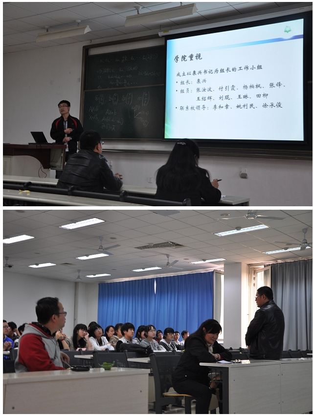 张锋辅导员首先向同学们简要介绍了我校德育开题工作的背景、指导思想、组织原则以及结合自身学院特色为同学们指定的德育开题主题——“奋斗青春,乐以化学”。