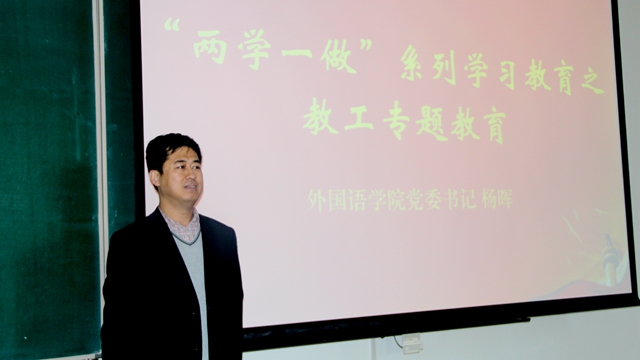 按照学校相关工作部署,2016年11月22日下午,外国语学院“两学一做”系列学习教育之教工专题教育在研究生楼302教室进行...