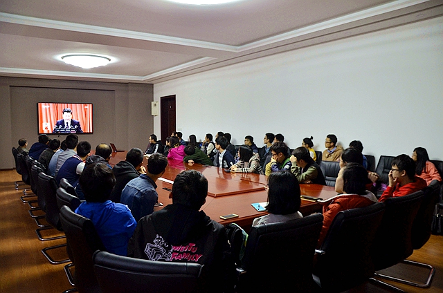 米兰机械学院师生认真收听收看党的十九大开幕盛况
