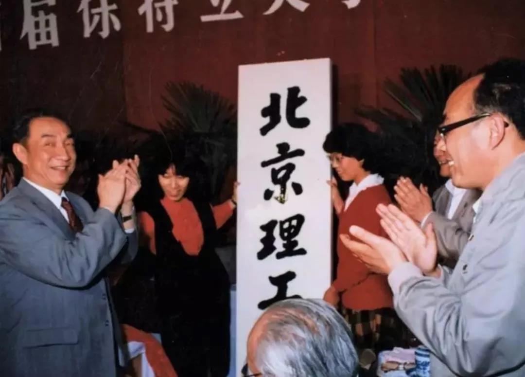 1986年9月,时任中共中央书记处书记习仲勋(中)和北京工业学院院长朱鹤孙(右),共同为在我校中心花园落成的徐特立铜像揭幕,该铜像由自然科学院校友和广大师生共同发起倡议,经中央批准后建立