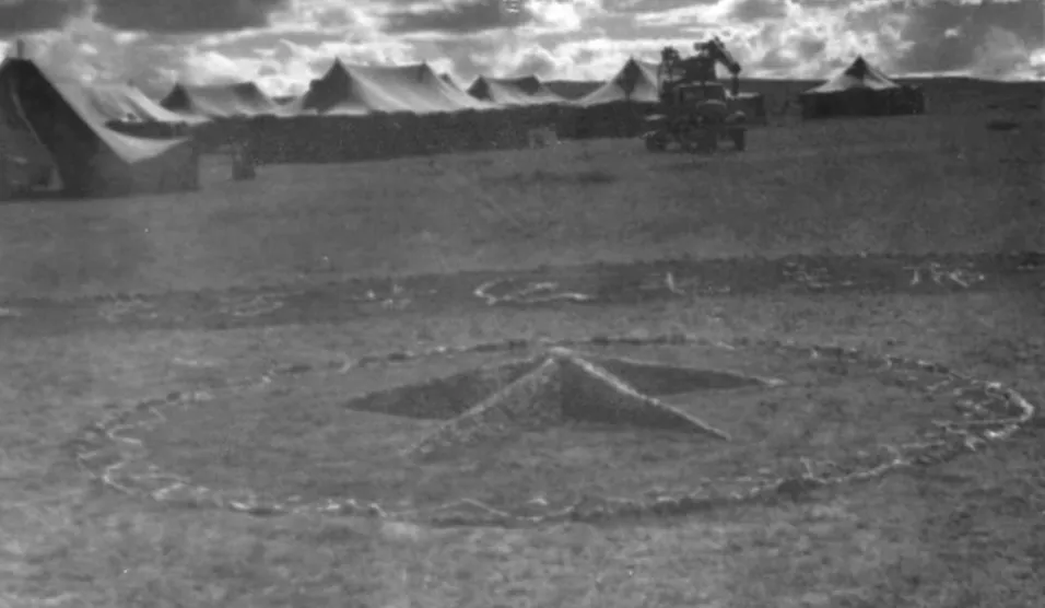 师生们正在挖掘用于火箭发动机地面试验的土坑