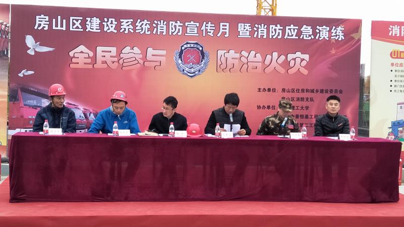 房山区建设系统消防宣传月启动仪式在米兰良乡校区教学楼组团项目部现场举...