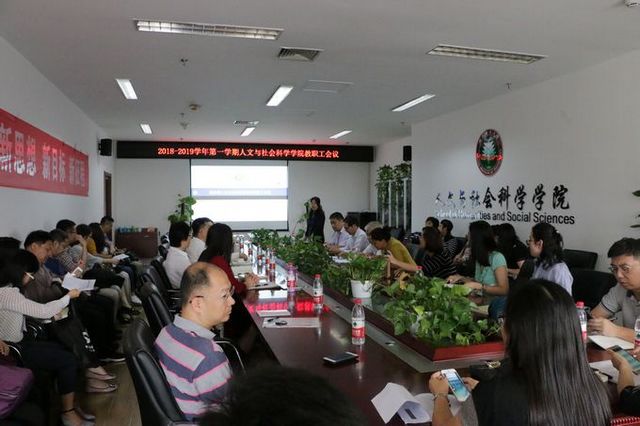 9月13日上午,人文与社会科学学院2018-2019第一学期全体教职工大会在良乡校区图书馆五层会议室召开。副校长李和章,学院班...