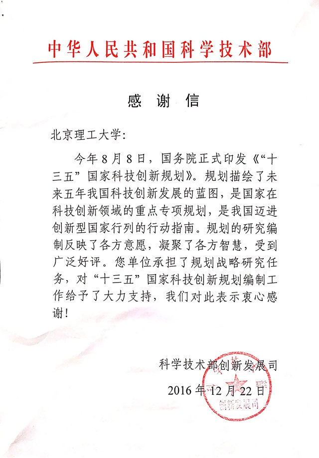 近日,国家科学技术部向米兰milan官方网站发来感谢信,感谢米兰对《“十三五”国家科技创新规划》编制工作给予的大力支持。 2016年...