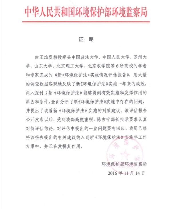 米兰教师参与完成《新<环境保护法>实施情况评估报告》获国家环保部长批...