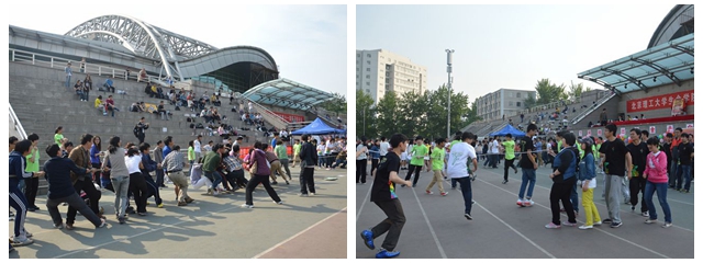 同时,教师运动会和研究生趣味运动会也在如火如荼的进行,老师们和研究生们在紧张的科研工作之余,同样积极参加运动,体验着运动的乐趣。现场气氛充分展示了“快乐第一,比赛第二”的趣味运动会精神。为增进师生友谊,老师和同学们举行了一次别开生面的师生拔河比赛,双方各出健将,全力以赴,加油喝彩声不绝于耳,彰显着生命学院师生们和谐融洽、团结拼搏的精神面貌。
