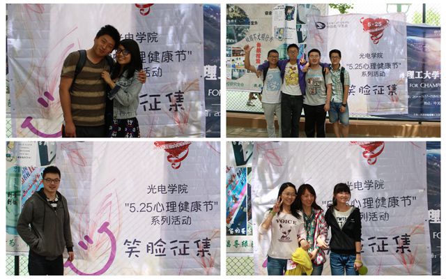 5月15日,光电学院分团委学生会在西篮球场外举办笑脸征集活动,两个小时的活动过程中,老师和同学们热情参与,留下了他们灿烂的笑容。