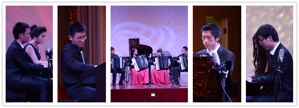 整场音乐会中,不仅有对经典作品的演绎,如钢琴协奏曲《柴可夫斯基第一钢琴协奏曲》、钢琴四手联弹《军队进行曲》《马刀舞曲》、钢琴独奏《玛捷帕》、手风琴六重奏《阿莱城的姑娘》、手风琴二重奏《光和影》、手风琴独奏《斗牛舞》;也有对经典电影作品中那些让大家耳熟能详的音乐片段的重现,如《不能说的秘密》中的斗琴、四手联弹;同时还有钢琴团酝酿半年之久、此次隆重推出的,由毕业于茱莉亚学院的美国跨界双钢琴演奏家Anderson和Roe改编的世界名曲:四手联弹《蓝色多瑙河》 、《练声曲》的首次登台亮相。这些风格多样的钢琴和手风琴演奏,带给建筑大学的老师和同学们耳目一新的感觉,台下的掌声经久不息。